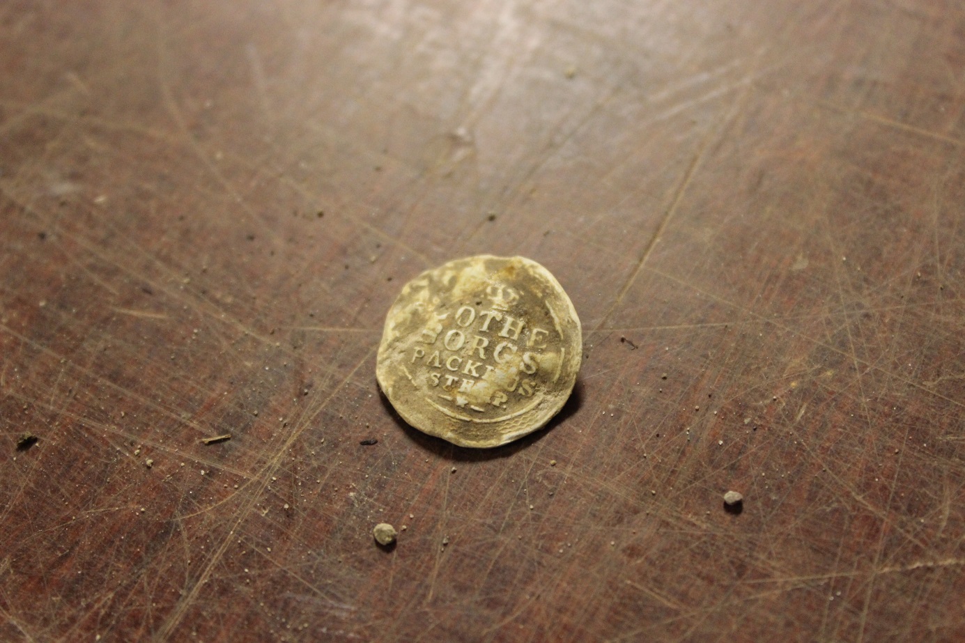 En blyplomb för märkning av varor med stämpel ”Götheborgs packhus” antyder en närhet till marknadsplatsen.